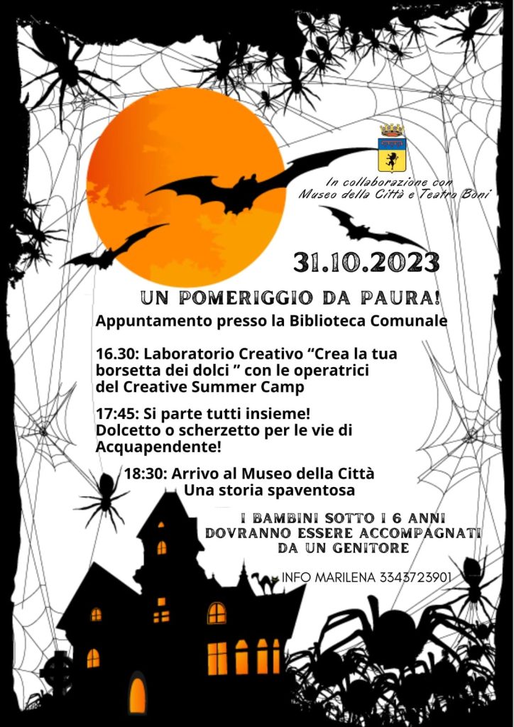 Laboratorio creativo per borsette di Halloween (16.30), dolcetto o scherzetto per le vie di Acquapendente (17.45) e racconto spaventoso al Museo della Città (18.30). Organizzato… Leggi tutto: Un pomeriggio da paura! - SAN LORENZO NUOVO – L’ora del racconto